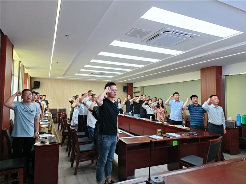 會上,全體黨員在莊嚴(yán)的黨旗下重溫入黨誓詞,“我志愿加入中國共產(chǎn)黨,擁護(hù)黨的綱領(lǐng)……”鏗鏘的誓詞,回蕩在會議室的每個角落,銘刻在每一個人的心頭。重溫入黨誓詞后,集團(tuán)公司黨支部副書記徐蕾同志為上半年過“政治生日”的黨員發(fā)放政治生日賀卡,黨員們也紛紛為過“政治生日”的黨員送上祝福。