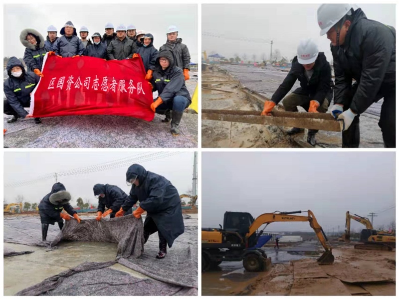 2月2日,農(nóng)歷大年初二,雨雪交加。區(qū)國資集團(tuán)黨員突擊隊(duì)、志愿者服務(wù)隊(duì)前往疫情防控隔離點(diǎn)協(xié)助搬運(yùn)材料、清理廢渣、鋪設(shè)防凍布等,項(xiàng)目現(xiàn)場一派繁忙景象。下午項(xiàng)目建設(shè)組開始布置班組,明日正式開始準(zhǔn)備區(qū)折疊房吊裝施工,確保春節(jié)期間施工組織有條不紊,有序推進(jìn)。